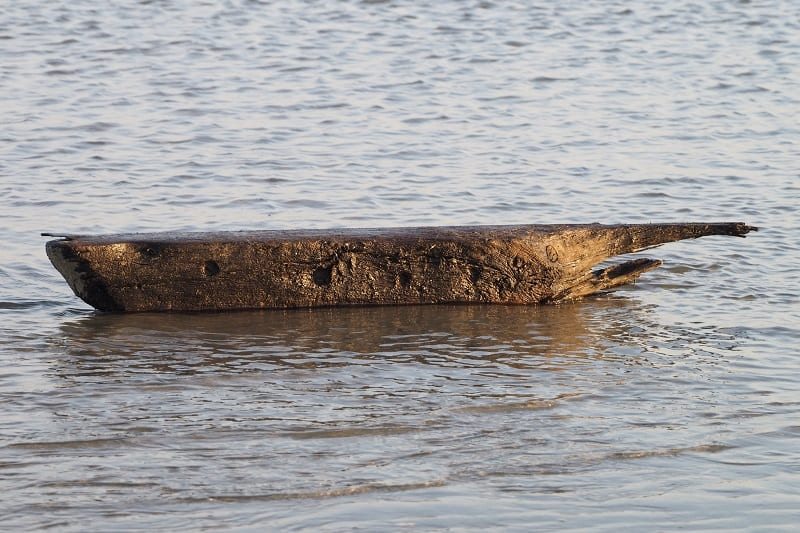 Vanmorgen , in de branding, een oud stuk hout. Met de restanten van houten penverbindingen zichtbaar. Getuigenis van een ramp van ver voor onze tijd? Wie zal het zeggen, maar de gedachte dringt zich wel op.