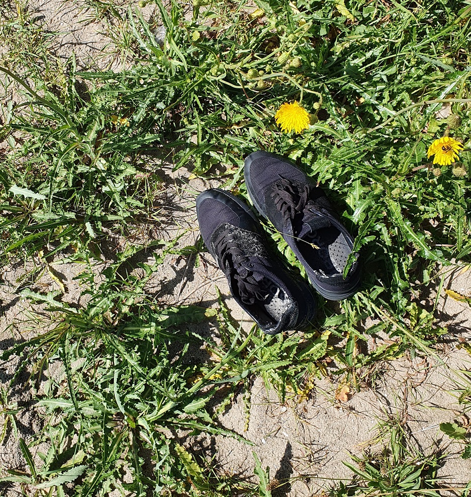 Dit moet vast al wat langer zijn geleden, want het zand rondom de schoenen vertoonde geen enkel spoor meer.