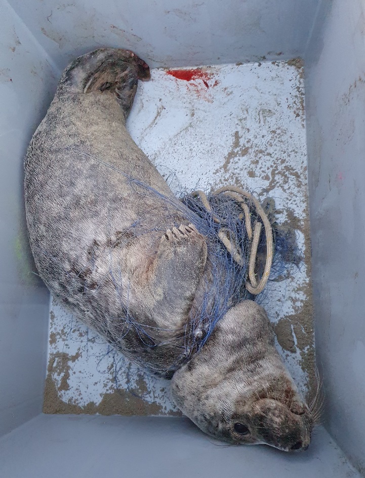 Uiteindelijk is besloten het dier bij Aseal van het insnijdende net te verlossen.