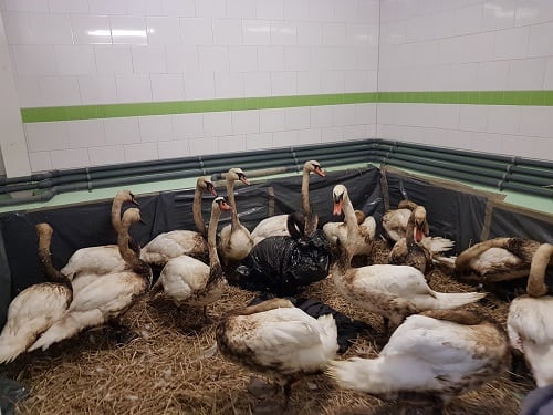 We hebben tientallen besmeurde zwanen naar diverse opvangcentra gebracht.