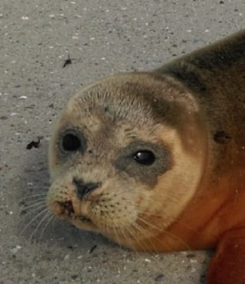 Melding via meldkamer Politie van een kleine verzwakte zeehond op het strand van de Maasvlakte.