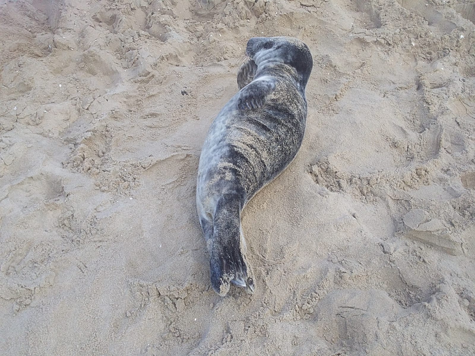 In dit geval werden ze bij een jonge grijze zeehond geroepen, die op het strand lag uit te rusten.