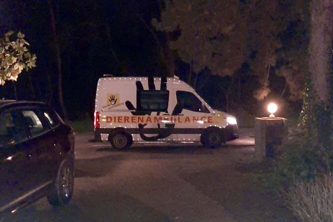 Eenmaal thuis de vogel tot rust laten komen en na een uurtje verscheen de Dierenambulance. Als de kersttruck van de Postcodeloterij of van Coca Cola kwam hij eraan. Een lichtbaken van hoop stopte voor de deur en drie dierenverzorgers ontfermden zich over onze Jan. Geen bestemming als bout op tafel of trofee aan de muur. Wordt vast nog een mooie kerst voor hem.