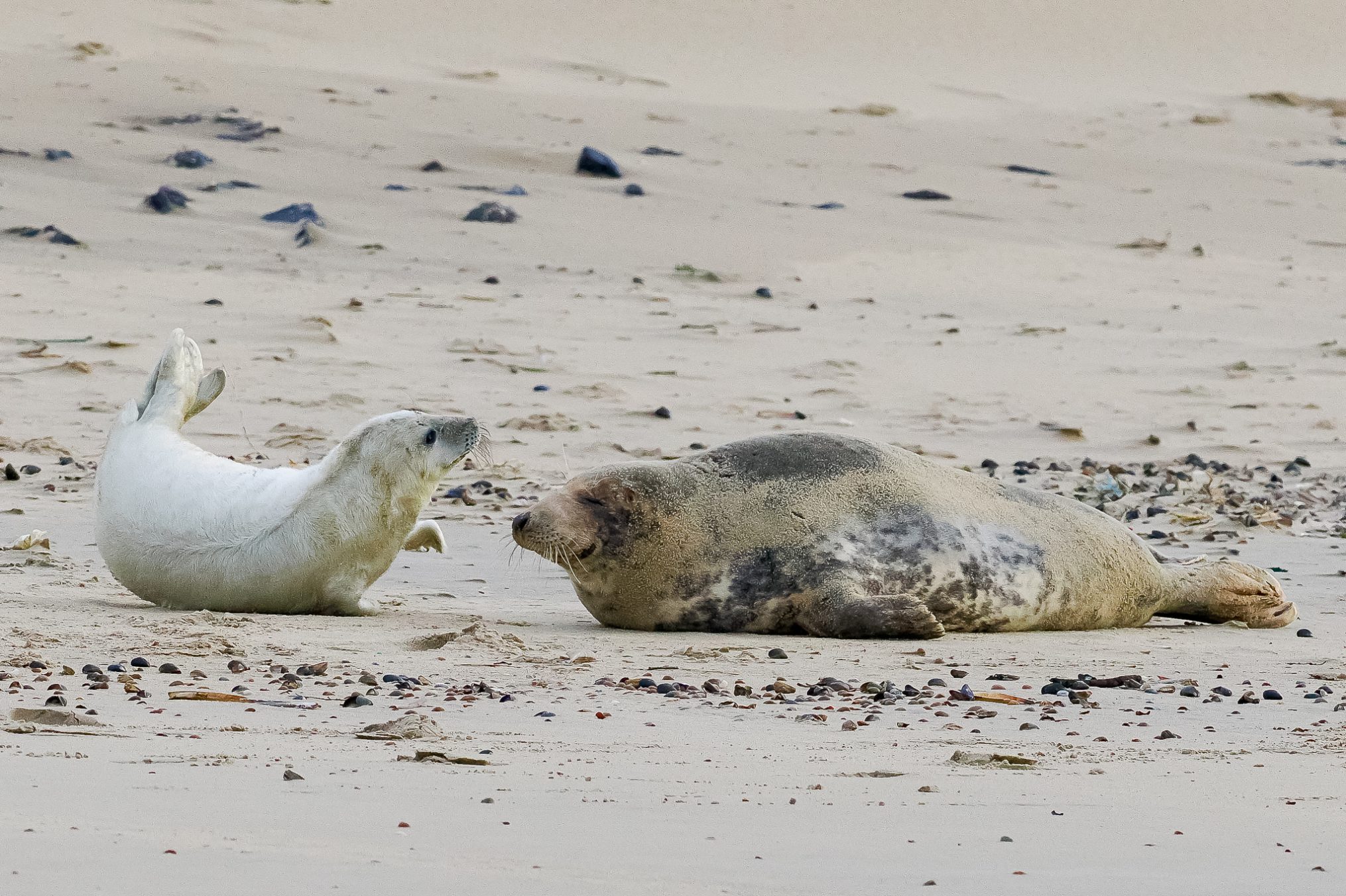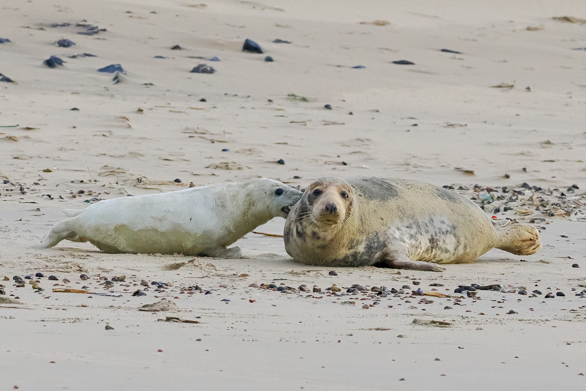 De jeugd van een Grijze zeehond lijkt vrij overzichtelijk. Zo’n drie weken liggen en vet worden, daarna vervellen en zelf je zwemdiploma halen, dat is het dan. Geen interactie met soortgenoten in de wei, geen gestoei met pups uit hetzelfde nest. Niets daarvan. En ook tijdens het liggen op het strand maar beperkt contact met moederlief. Om de paar uur gevoed worden en wat aandacht, daarna is ze weer verdwenen.
