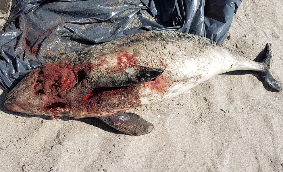 Tijdens een oefening op het strand van de Brandweer Maasvlakte, werd op de vloedlijn het kadaver aangetroffen van een nog heel jonge bruinvis.