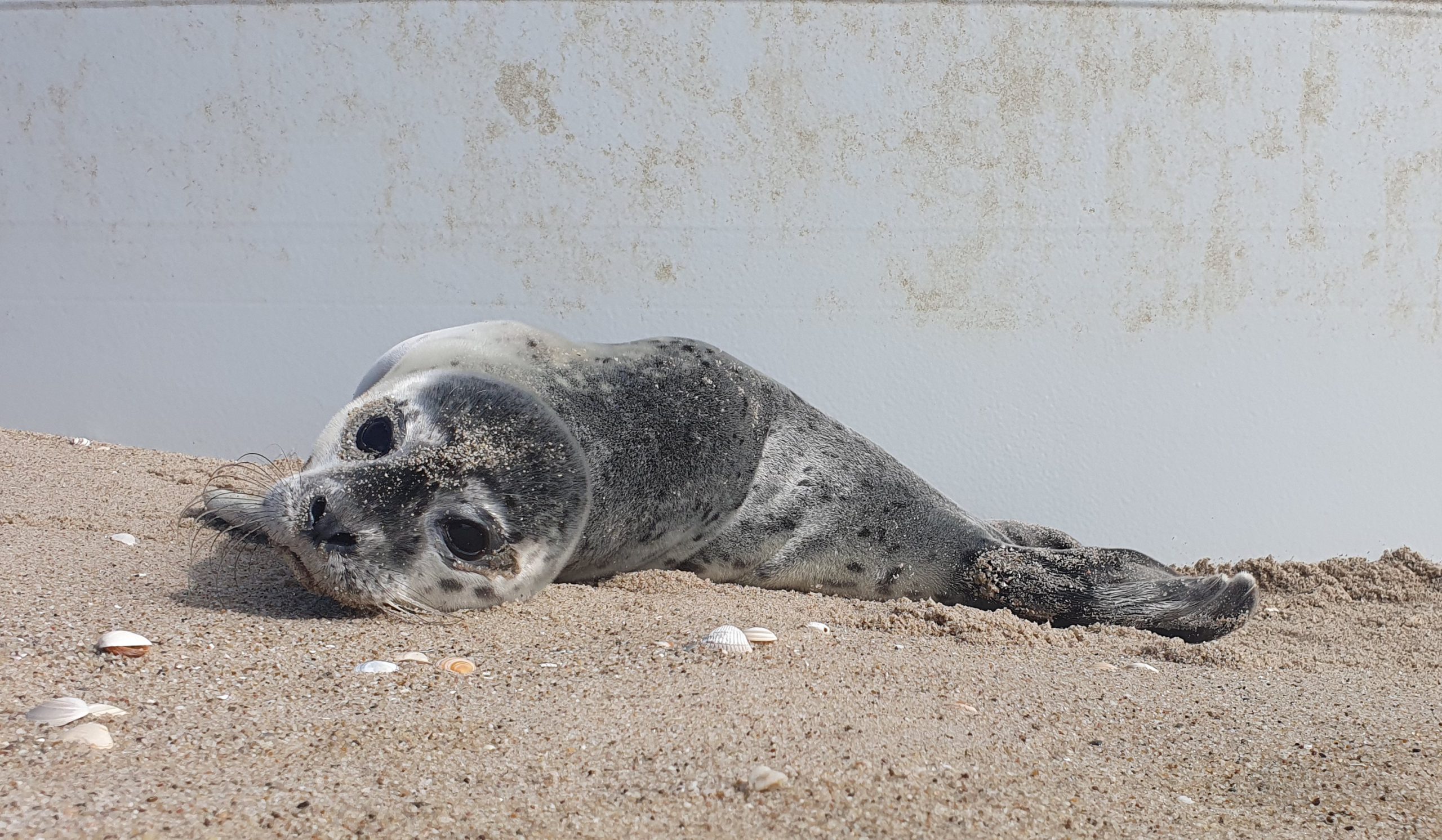 Gisteren werd er weer een klein zeehondje gemeld op het strand van de Maasvlakte.