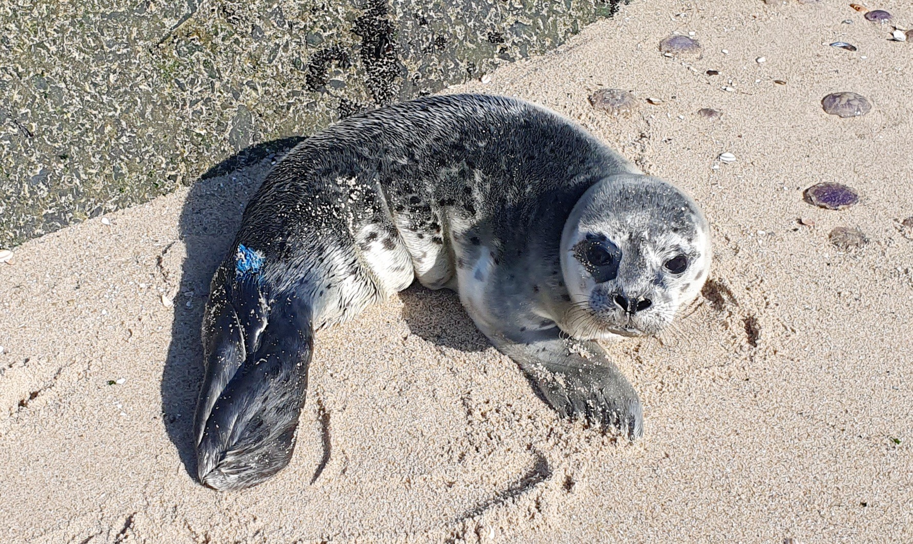 Later werd de pup een stuk verder weer aangetroffen op het strand.