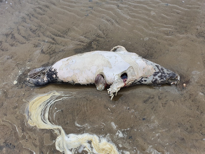 Nu de wind weer uit het westen is gaan waaien, spoelen er wat meer kadavers aan.