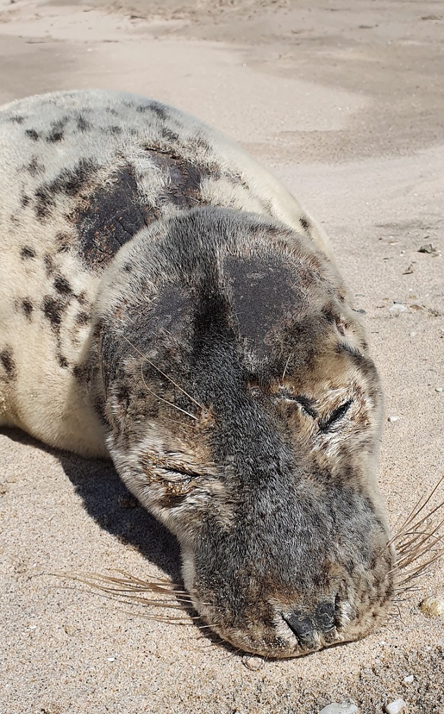 Het sterk vermagerde dier was al eerder gestrand bij Noordwijk, heeft toen een kleurmerk gekregen en is daar een tijdje geobserveerd en verplaatst naar een rustiger omgeving.