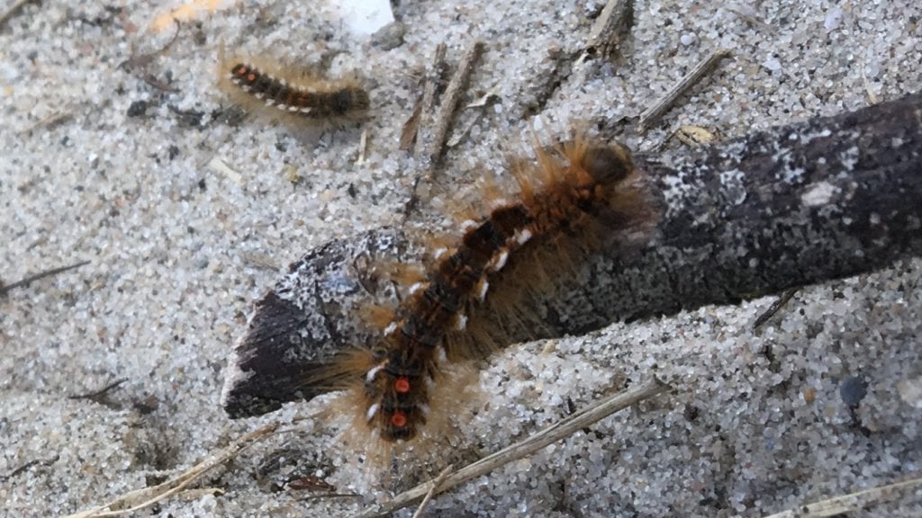 De rupsen zijn zo’n 32 mm en zien er prachtig en aaibaar uit met hun lange haren! Toch moet je erg uitkijken, want -net als de eikenprocessierups- geeft ook deze rups brandharen, die irritaties aan de huid, ogen en luchtwegen kunnen geven.