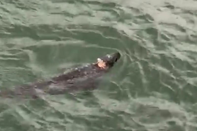Hij heeft zelfs een filmpje kunnen maken en gezien dat het dier nog een visje verorberde.