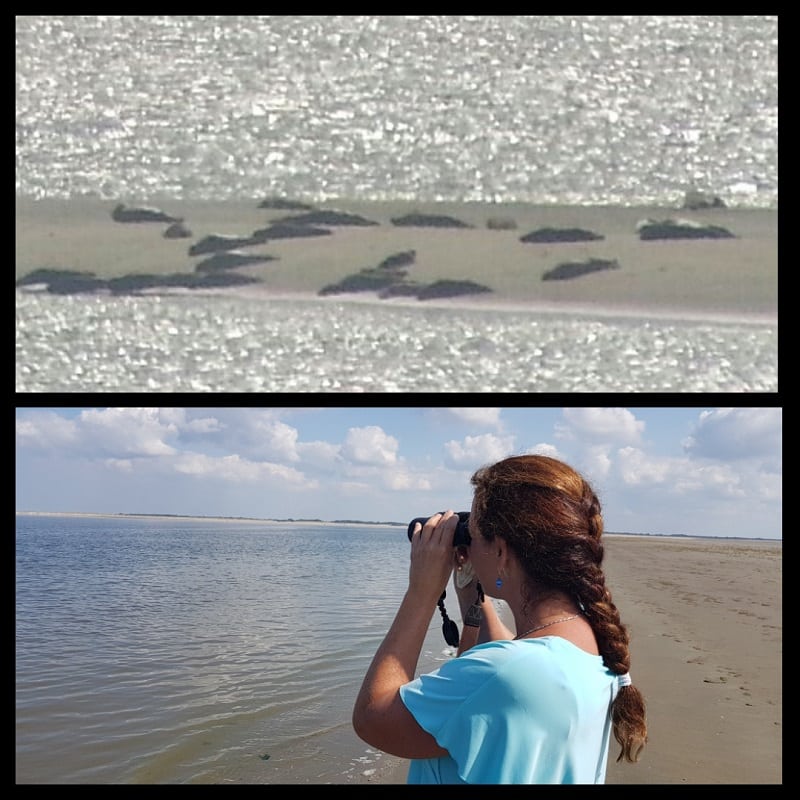 Neem een verrekijker mee en zoek de zandplaten af, tijdens laag water.