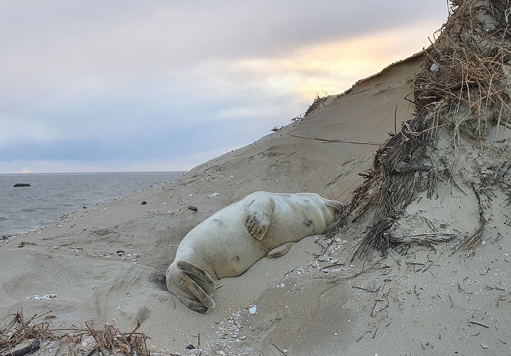 Zoals je op de foto kunt zien was het dier alert, defensief en zag er verder prima uit. Het dier was het strand op gekropen en had in het duin een redelijk beschut plekje gevonden.