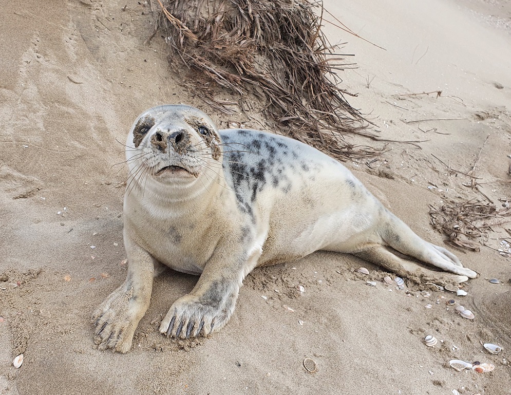 Zoals je op de foto kunt zien was het dier alert, defensief en zag er verder prima uit. Het dier was het strand op gekropen en had in het duin een redelijk beschut plekje gevonden.