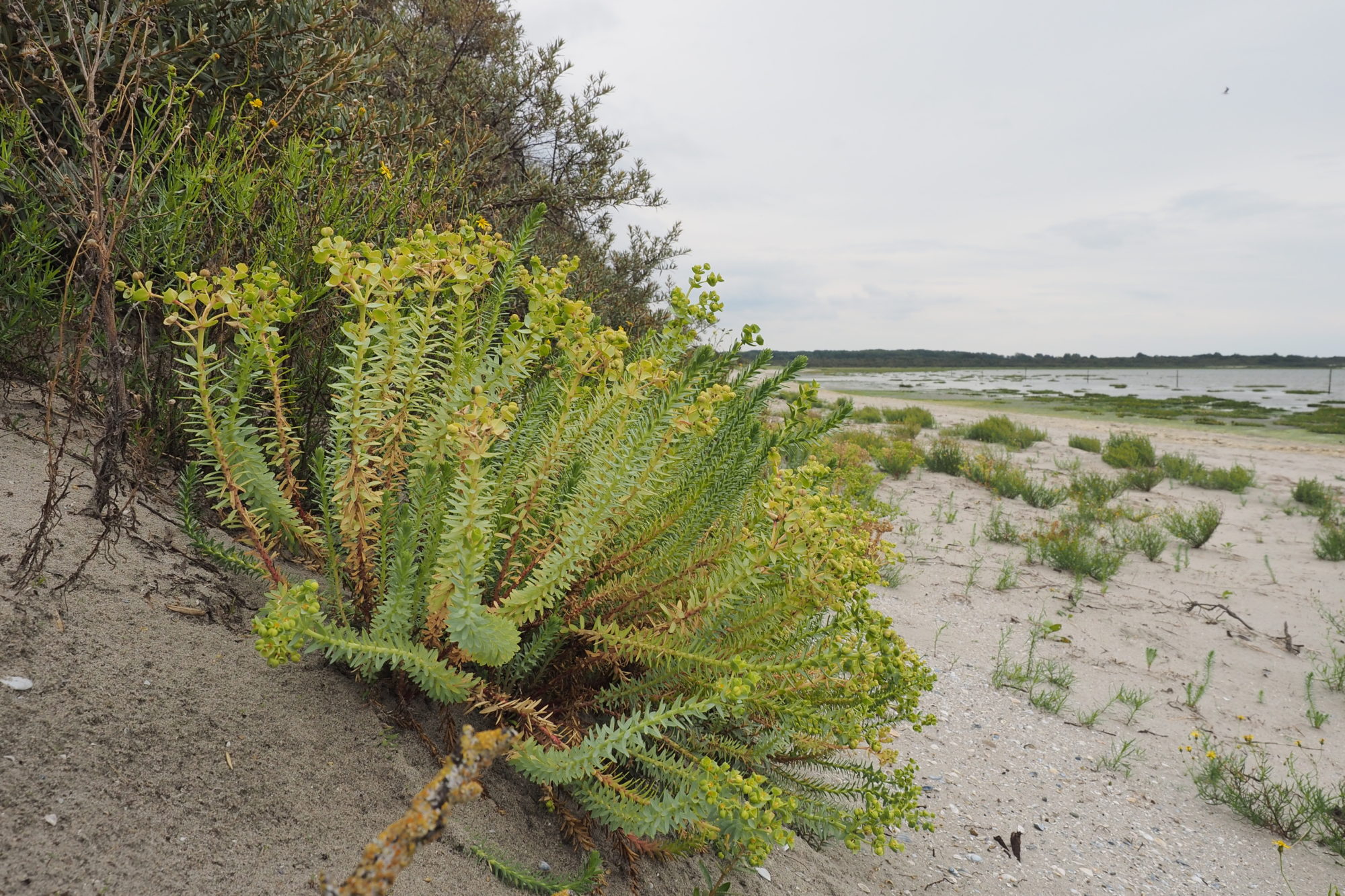Algemeen aan de kust van de Delta , met name op Voorne en Goeree, in het noorden van Nederland een bijzonderheid: Zeewolfsmelk. Gedijt uitstekend boven de vloedlijn bij de beginnende duintjes, is door de textuur van zijn stengels en bladeren goed bestand tegen de felle uitdrogende zeewind. Zijn naam heeft de Zeewolfsmelk te danken aan het witte giftige sap dat rijkelijk stroomt wanneer je een stengel afbreekt. Zeewolfsmelk is de waardplant voor de wolfsmelkpijlstaartvlinder met bijbehorende wolfsmelkpijlstaartrups. Mooie namen die recht doen aan de schoonheid van dit beestje. Kom je van buiten de Delta en bezoek je onze stranden dan wil je ze zien, plant, rups en vlinder. Helaas lukte het mij vandaag niet dit triootje te scoren…….